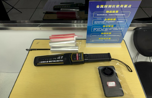 一是强化考生入场检查关。为规范考生入场检查操作流程,将金属探测仪使用要求梳理归纳为物品检查、头部检查等五大模块,提炼实用口诀并制作提示牌。通过琅琅上口的口诀强化记忆、醒目的提示牌直观指引,帮助监考人员快速掌握操作要点、提升检查效率,为实现考生入场检查 “零疏漏”提供有力支撑。二是强化考生遵纪关。为有效提醒考生规范应考行为,在“物品放置处”粘贴显眼标识,简要列出禁止携带的物品清单及入场注意事项。帮助考生快速完成物品自查,从源头降低违规物品带入考场的风险。三是强化监考关。考试期间,党员监考人员统一佩戴党徽上岗,主动亮明身份、树立行为标杆,以更高标准严格自我约束,以榜样力量带动考务队伍强化责任担当、规范履职行为。